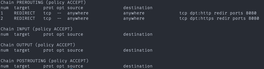 포트폴리오 사이트를 띄우기 위해 E2 서버를 띄우고 가비아에서 구매한 도메인을 구매했다가비아에서는 해당 도메인이 80포트만 지원하기 때문에 8080 포트에서 80 포트로 포트 포워딩을 해야 한다 1. iptables 조회 sudo iptables -t nat -L --line-numbers--line-numbers 옵션을 주면 번호가 부여가 되는데 삭제할 때 유용하다2. 포트 포워딩 등록sudo iptables -t nat -A PREROUTING -p tcp --dport 80 -j REDIRECT --to-port 8080sudo iptables -t nat -A PREROUTING -p tcp --dport 443 -j REDIRECT --to-port 8080 3. 포트포워딩 삭제sudo ipta..