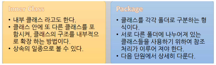 - Inner Class는 상위 클래스가 가지고 있는 모든 자원을 자신의 것처럼 사용할 수 있다.