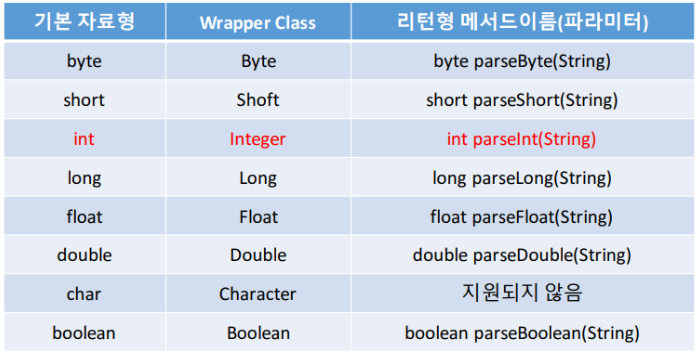 - 문자열 데이터를 실제 기본 자료형으로 변환시키는 기능