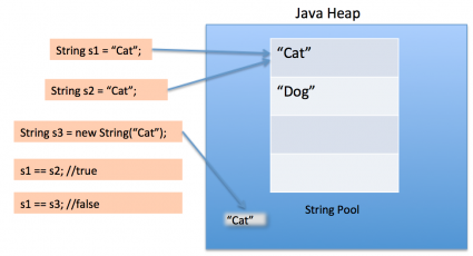 기본적으로 String 객체 생성하는 방법 두 가지 public class StringExample { public static void main(String [] args) { String name1 = new String("suna"); String name2 = "suna"; String name3 = "suna"; } } Java에서 String은 특별한 참조 자료형이다. 두 객체 생성 방법 모두 동일하게 객체 생성이 되지만, JVM이 관리하는 메모리 구조상에서 차이가 있다. Java에서 String은 불변 클래스이고 참조 타입이기 때문에, 객체를 생성할 때 Heap 영역에 생성이 된다. 자바 안에는 String pool이란 게 있는데, 큰 따옴표(" ")로 생성하면 먼저 String pool에 ..
